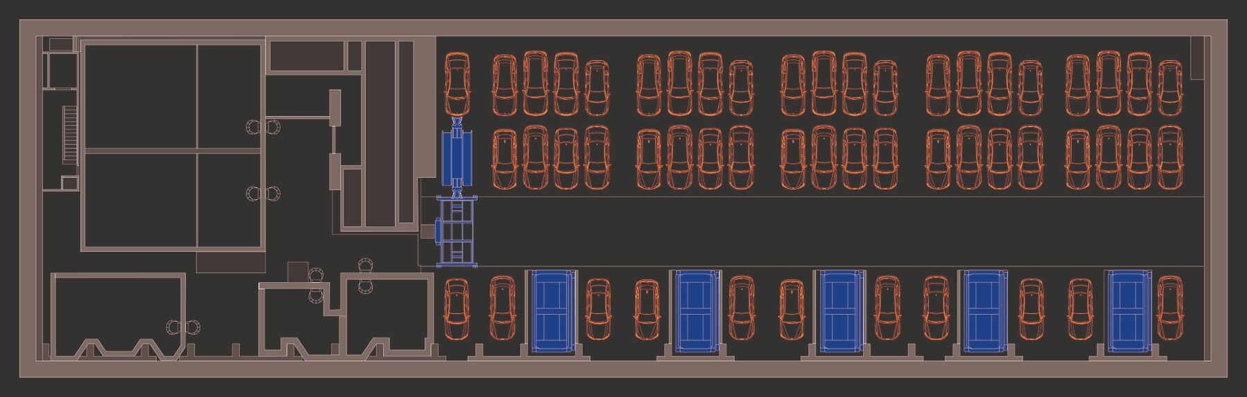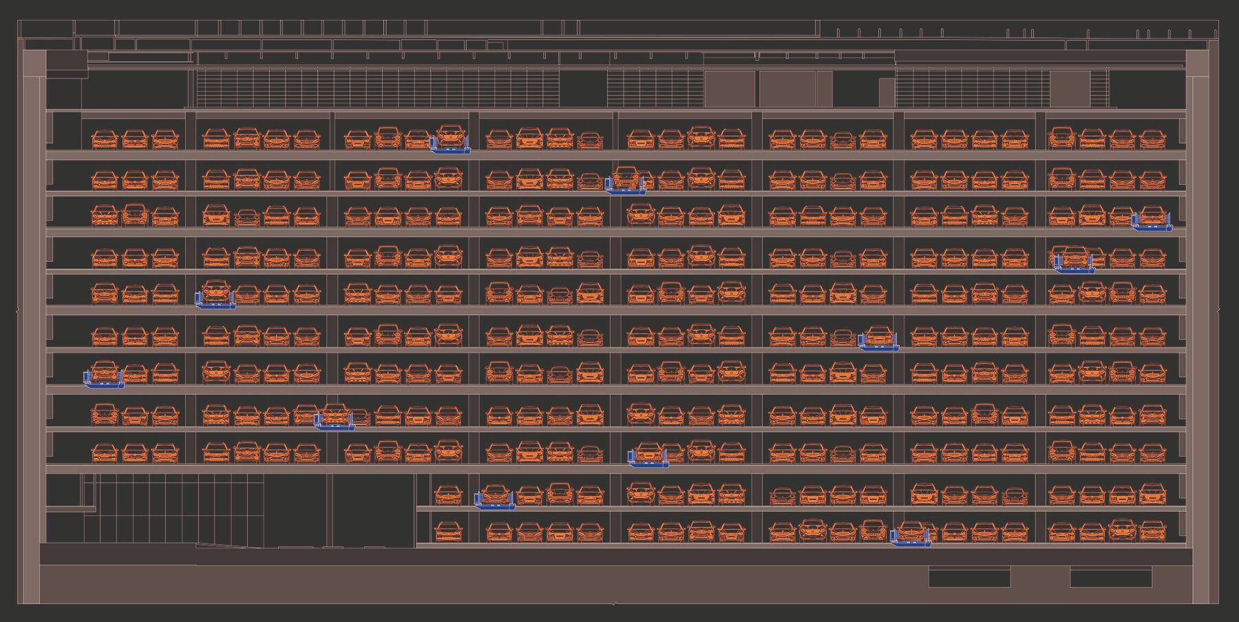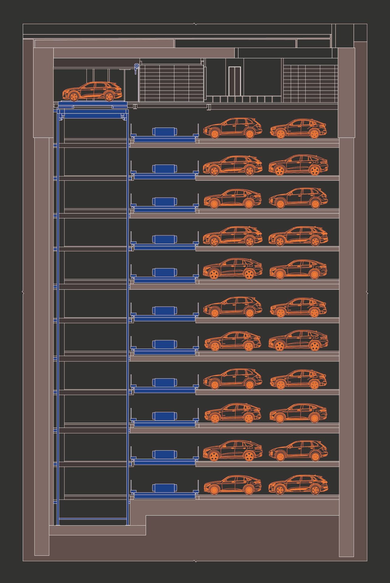 There is space for 80 vehicles per level. There is constant movement. WÖHR has opted for a "chaotic system".